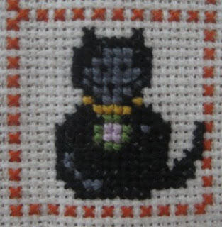 Oli vähän vaikeuksia löytää enää puita, marjoja, hedelmiä tai Halloween aiheita, joita ei olisi jo pistelty - varsinkin, kun mallien piti olla niin pieniä. No, onneksi mansikkaa ja päärynää ei oltu vielä tehty, eikä mustaa kissaa Halloweeniin, puiden osalta taisi käydä niin, että havupuu oli jo,samoin omenapuu, mutta ovatpa ainakin erilaisia.
